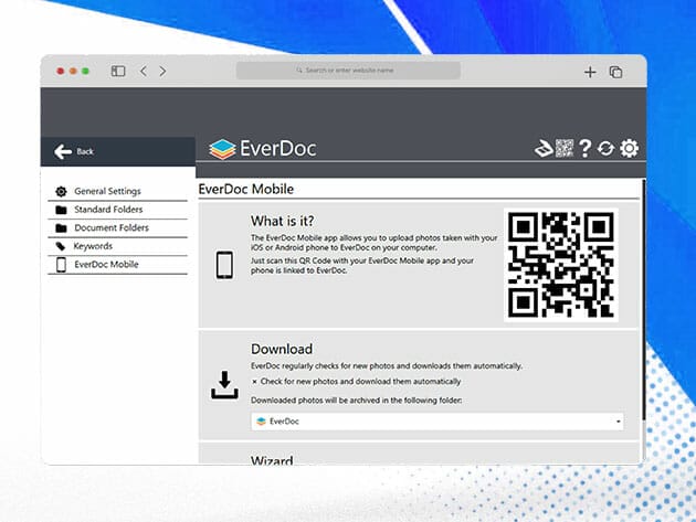 Document management via app. With the EverDoc Mobile app (available for iOS and Android), documents can also be photographed on a smartphone & transferred to your home computer