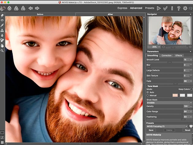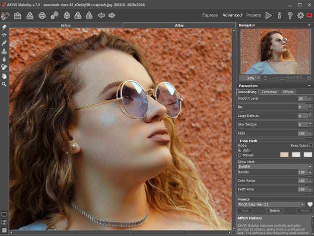 Smooth, brighten & freshen up the skin without changing other aspects of the photo