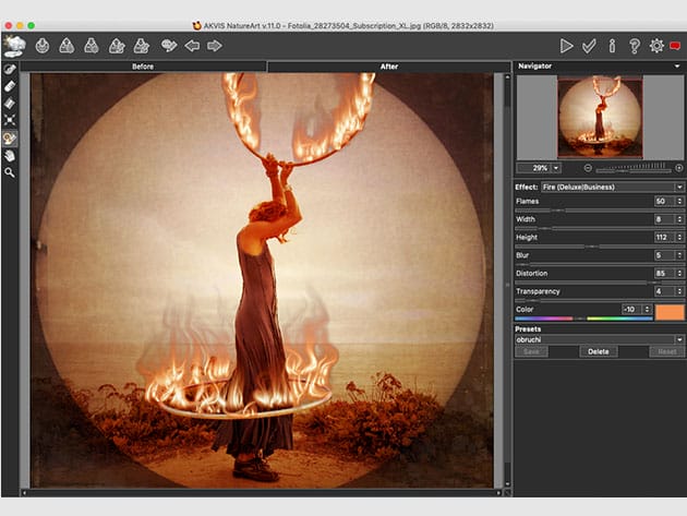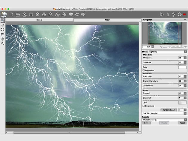 Silicon Summit:“Need a rainy sky with magnificent lightning bolts – no problem. Need a burning field or fire for your camp fire pit – again no problem. Akvis NatureArt can add these plus many other nature effects to your photos.”