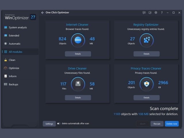 Ashampoo WinOptimizer 27 is a comprehensive system optimization tool with over 30 modules. The tuning software speeds up Windows, secures privacy, resolves system issues, and removes superfluous files.