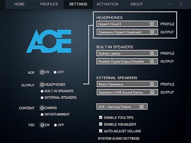 Audio Optimization Experience, or AOE, is a Mac/Windows software that enhances the quality of your audio coming out of your speakers or headphones. AOE is powered by the Bongiovi Acoustics Lab’s Digital Power Station technology, a patented algorithm with 120 calibration points that optimizes any audio signal in real-time. DPS adds depth, clarity, definition, presence, and incredible stereo field imaging just by implementing it into a device or system. Video games, apps, music and movies, videos, VOIP, and video conferencing software like Google Voice™, Skype™, and Face-time™ will all come to life through the computer’s onboard speakers, external speakers, or headphones.