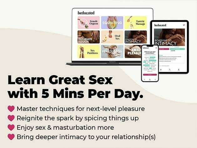 Learn how to have great sex with Beducated, the #1 online platform for pleasure-based sex education. The extensive library boasts 100+ online courses on everything from basic oral sex guides to rope-bondage tutorials, all produced by the world’s top experts.