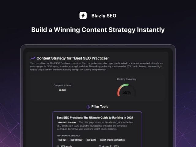 “Blazly SEO has become our secret weapon. The Strategy Builder is a game-changer. We used to spend weeks planning content; now we generate a complete, data-driven plan in five minutes. We’re ranking for keywords we never thought we could target.” – Sarah L. | Marketing Manager @ SaaS Co
