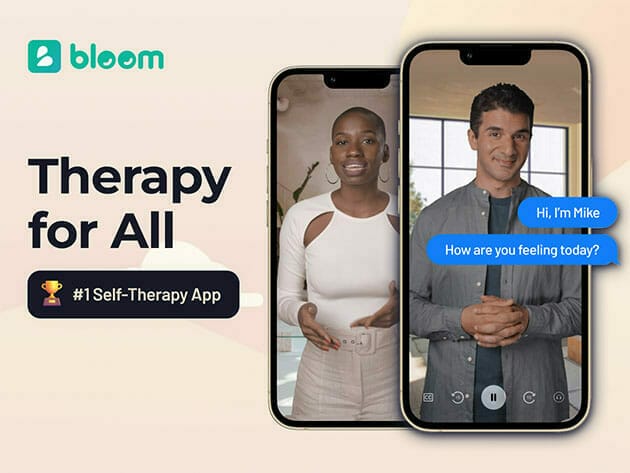Bloom is an interactive self-guided therapy app that offers journaling, breathing exercises, and video lessons to help improve your mental health. It includes guides on cognitive behavioral therapy skills. The app aims to reduce negative thoughts, anxiety, and depression through simple techniques like breathwork and daily reminders. Bloom also offers personalized programs to help you train your mind and is an affordable way to learn therapy skills. Video lessons are available to help manage stress and anxiety, improve sleep, build better habits, and foster stronger relationships.