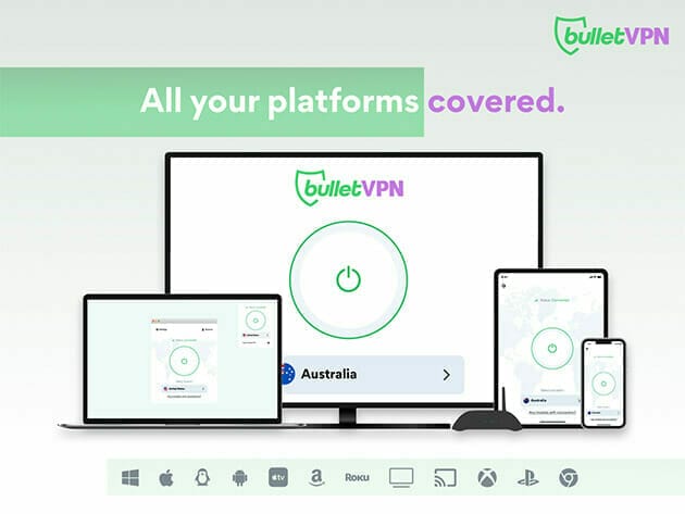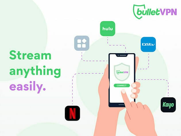 Enhance your browsing, content viewing, and gaming experience with BulletVPN. BulletVPN servers provide a reliable and secure service to protect your traffic from eavesdroppers at home or while on the move. With industry-standard encryption protocols, they offer high-quality connections and use premium grade carrier lines to provide the fastest possible speeds online. BulletVPN serves a large global network, allowing you to access hundreds of geo-restricted channels across the globe. This VPN service gives you the browsing experience that you need by unblocking top video sites such as Netflix, Hulu, BBC iPlayer, Amazon Prime Video, DAZN, and more. BulletVPN is compatible with Windows, Mac, Android, and iOS.