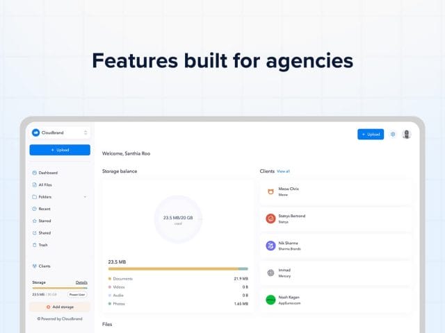 Cloudbrand serves freelancers, creative professionals, and digital agencies who regularly share files and collaborate with clients. The key difference between Cloudbrand and other services is its emphasis on creating a fully branded experience. You can customize the platform with your logo, colors, custom domain, and email, giving your clients the impression they’re interacting with your agency’s custom-built cloud storage portal.