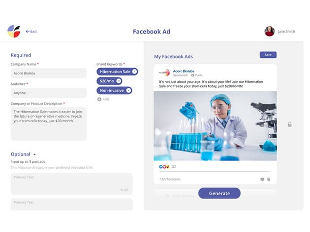 Automatically generate high-performing Google ads, Facebook ads, product descriptions, taglines, SEO metatags, & more