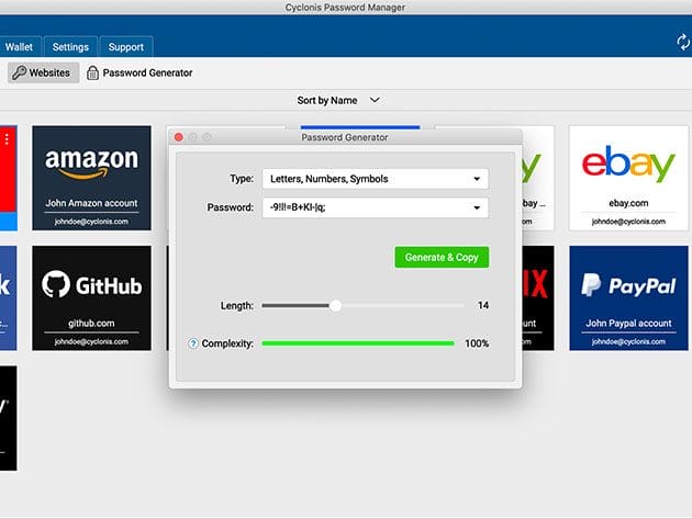 Using just a single password for multiple online accounts? Is keeping track of your many passwords an impossible task? With Cyclonis Password Manager, you can manage, organize and control all your passwords in one central place. Cyclonis Password Manager stores your data in a personal vault, that is encrypted with AES-256 bit, an encryption algorithm used by governments, financial institutions, and in military applications. Along with an encrypted vault that stores all your personal, payment, and login information, Cyclonis gives you a helpful estimate of the strength and complexity of your passwords. Last but not least, it saves you precious time by working directly in your browser to let you access your data and log in to your website accounts whenever you need it.