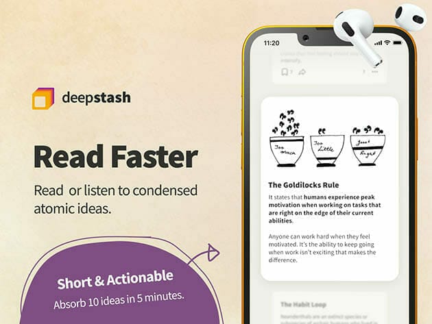 Deepstash is a platform for finding and organizing the ideas that matter to you. It helps you become more inspired, wiser, and productive, through bite-sized ideas. In Deepstash, you find ideas on topics that interest you. These ideas are represented as little cards you can read at a glance. All ideas have a source: a book, an article, a podcast, etc. And they are curated by smart people like you.
