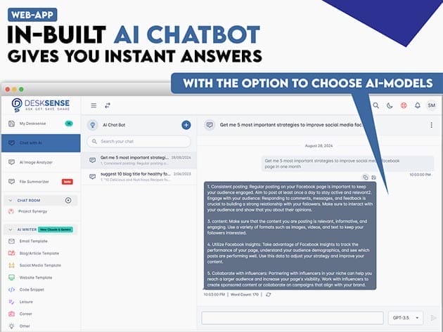 Imagine having an AI-powered sidekick that helps you ace your writing tasks effortlessly. With Desksense AI-Writer, you get to use our super-smart AI writer along with easy-to-use preset templates. No more staring at a blank page—just pick a desired template from 40+ Preset Templates, let the AI do its thing, and voila! Perfect for Emails, Articles, Programming codes, Social media Content, Ad copy, Essays, Reports, and anything you could imagine that needs a creative touch.