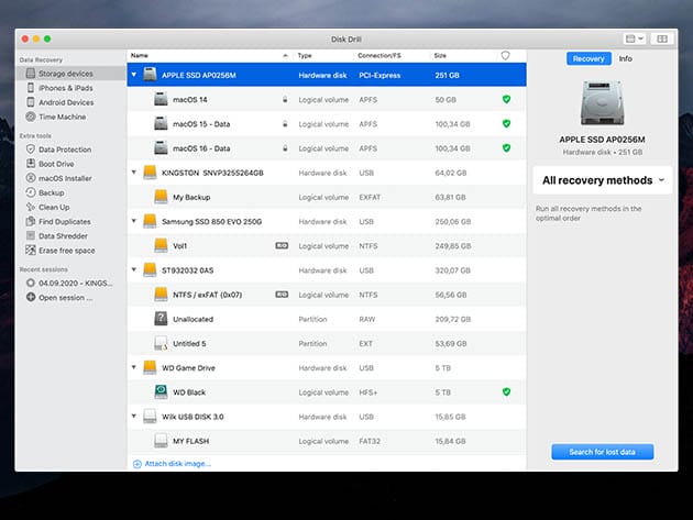 Accidents happen, which is why it’s critical to have a data recovery system at your disposal. Disk Drill Pro makes it easy to recover documents, music, photos, videos, or even whole partitions that have gone missing from your computer. With just a single push of a button, Disk Drill can recover over 200 types of files on your computer or even on external drives when you connect to a computer. Don’t get caught in a pinch by losing data — Disk Drill Pro is your insurance policy.