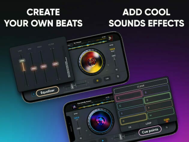 Complete DJing setup. Scratch, mash, edit, loop & fade your way to the top, all from your pocket!