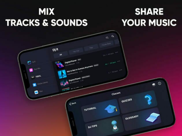 DJ it! condenses a fully functioning DJ set-up into your mobile phone without sacrificing a single feature. Your fingertips will have access to all the tools the pros have at their decks except now they’re on your mobile. Better still, DJ it! showcases precisely how to use these tools effectively as it offers a personalized educational experience to guide new DJs and veteran mixers alike!