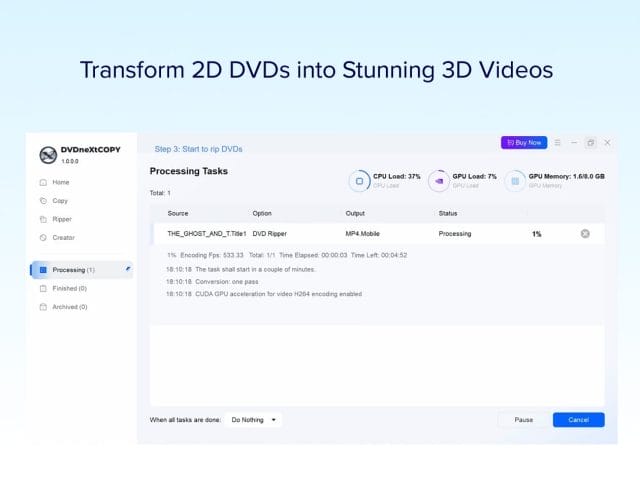 Create 3D Video Magic: Transform 2D DVDs into 3D MKV H.265, 3D M2TS, or 3D MKV HDR10—perfect for VR, media players, and 3D TVs.