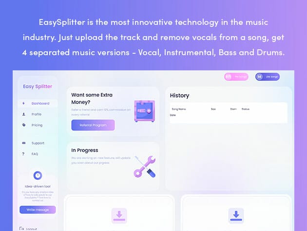 Upload any song into 2 or 4 STEMs Splitter Area