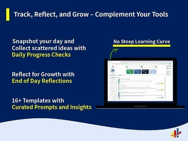 - 3 easy-to-use features: growth insights, daily progress tools, & end of day reflection