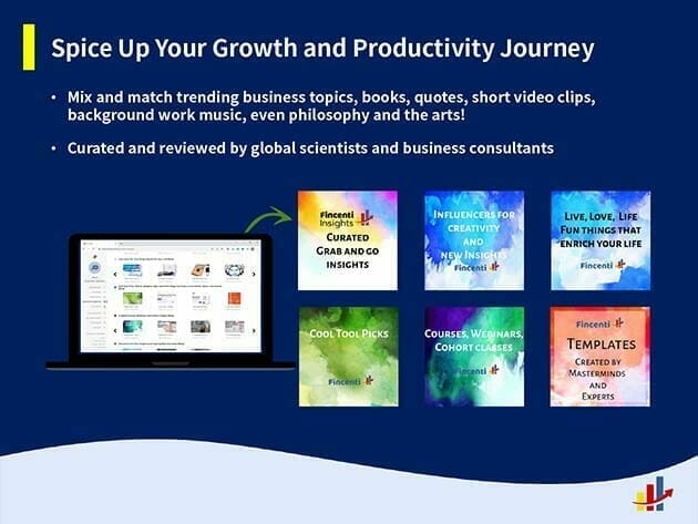 Fincenti is a next-generation growth and productivity tool with evergreen growth insights, and pre-loaded 150+ reflection prompts on 16+ different topics so that you can keep up with new business and productivity trends. It is a go-getter tool for capturing the new trends across the globe for your tailored applications.