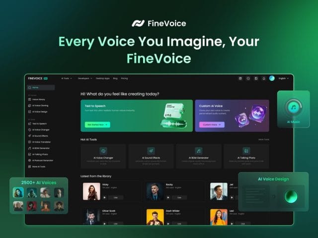 FineVoice is a versatile AI voice generator and creative content platform that lets you instantly produce realistic, human-like voices, music, sound effects, and videos. Deliver high-quality audio for video, audiobooks, podcasts, and more, making professional content creation effortless and accessible to all creators. FineVoice lets you explore a wide range of AI voices: from friendly and engaging to emotional and dramatic. These lifelike voices are ideal for a variety of purposes, including e-learning, YouTube videos, business presentations, and advertisements. With an ever-growing voice library, FineVoice adapts effortlessly to your voiceover needs.