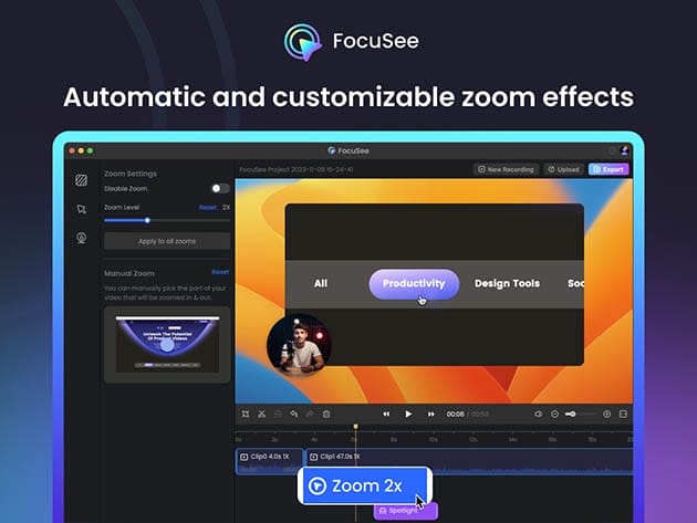 Effortlessly capture your screen, voice, and selfie, while FocuSee works its magic with automated editing. Track cursor movements, add dynamic zoom and click effects, apply a polished background, and voila! Instantly access a professional video/gif without the hassle of manual editing. Let FocuSee take charge of post-production while you focus on creating. Save time, skip the editing grind, and get stunning videos in minutes.