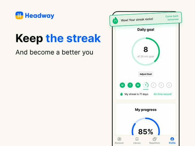 Headway is an app that will help you develop the most powerful learning habits and make sure you’re always armed with the best book ideas, bite-sized learning for fun and easy growth, and essential knowledge to crush your goals.