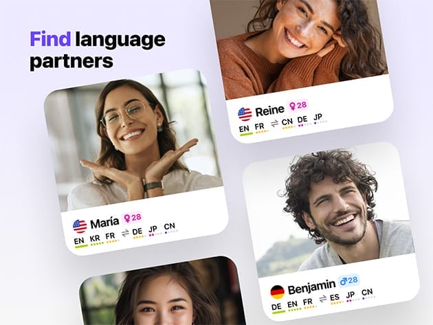 Text, Voice, Video, and More: Chat with language partners through text, voice messages, stickers, voice and video calls, and interactive Voicerooms and Lives, choosing the method that best fits your learning goals.