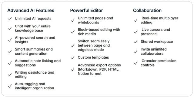 With intelligent AI features working alongside you, Hive helps you summarize, rewrite, and turn thoughts into clear action plans instantly, uncover insights faster, and refine ideas with clarity. Whether you’re mapping big concepts, planning complex projects, or simply trying to make sense of your thoughts, Hive transforms creative chaos into focused progress.