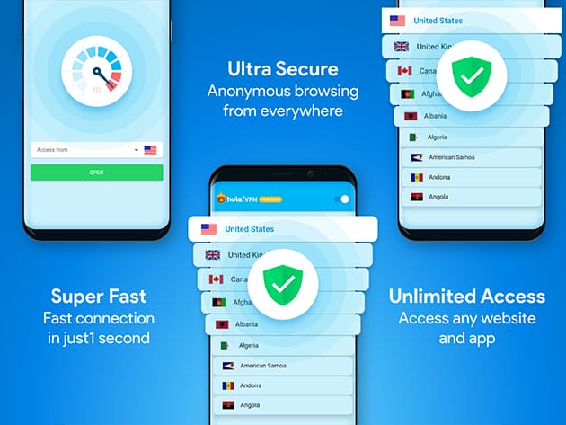Hola VPN is one of the most popular VPN services in the world, with over 200 million users spread in over 190 countries worldwide. Hola VPN offers unlimited access to any website, application or content while keeping your activities safe, secure and private. Hola VPN overcomes geo-restrictions and other censorship and enables you to browse the Internet openly, implement any task securely and privately, and fully enjoy your favorite content from any place at any time with excellent performance and speed.