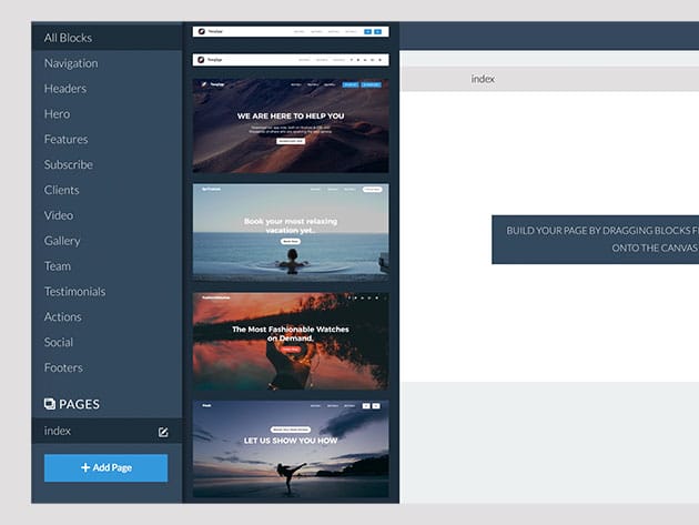 Build your landing page in seconds w/ a drag-and-drop builder