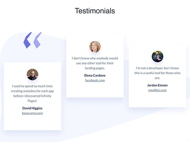 As the world shifts just about everything online, you might want to take advantage of that and launch your brand. InfinityPages is an easy, drag-and-drop web app that lets you build your landing page in seconds. With professional templates, elements, widgets, forms, and more, InfinityPages makes sure you create a website that gives users exceptional browsing experience. It doesn’t stop there; InfinityPages hosts your landing page on their cloud servers with 99.9% uptime and gives you accurate analytics for better tracking. Page building has never been this smart and easy!