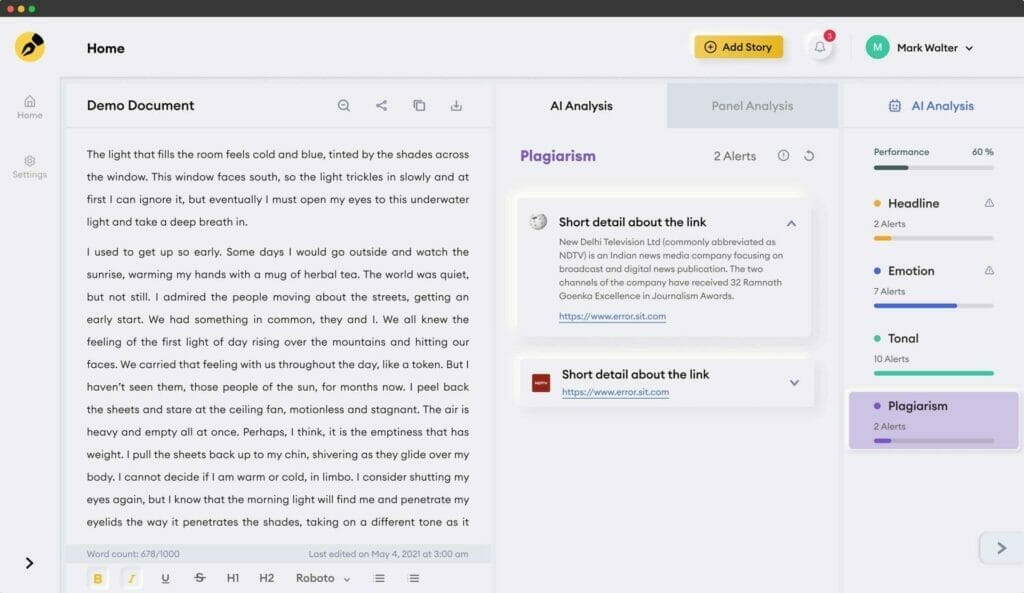 Instoried is a tool that predicts the sentiment analysis & emotional engagement for the written content with plagiarism checker & smart recommendations in Real-TIme to make your copywriting better!