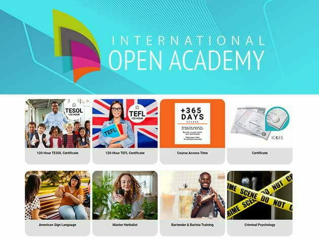 Lifetime access to all 190 International Open Academy courses across 12 categories