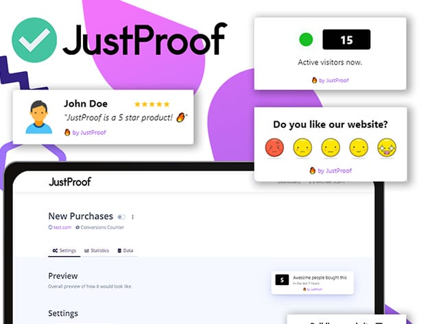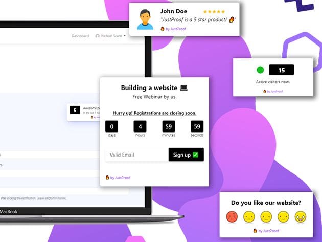 Making your website work for you doesn’t have to be difficult anymore, JustProof provides you with the tools needed to power up your website: collect feedback, inform clients of new promotions, or simply share your reviews and recent signups with prospects. All these functions turn your site visitors into paying customers. Set it up once and you’re good to go!