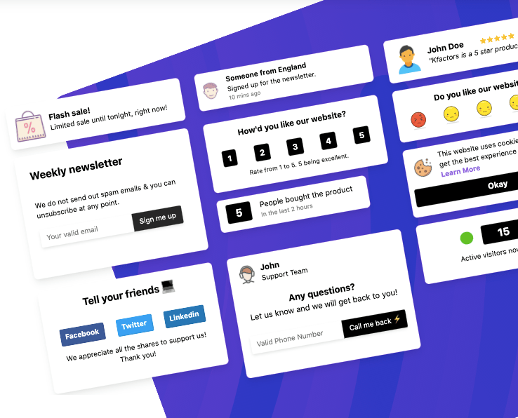 The system allows you to create professional and meaningful FOMO (fear of missing out) widgets to boot trust and conversions. The widgets are responsive, customizable and will work on any website.