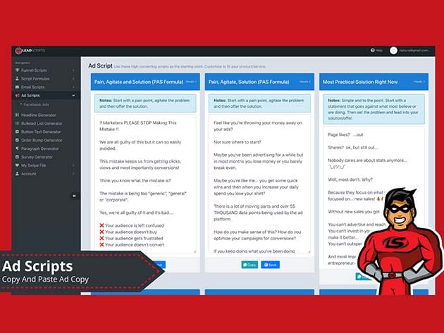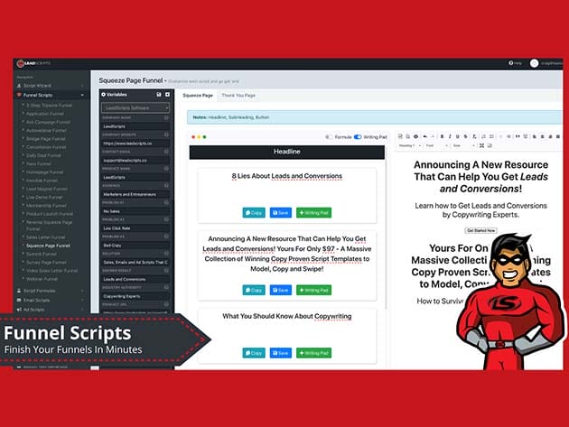 Wouldn’t it be awesome to get your product or service live and generating leads and sales as quickly as possible? LeadScripts is a fill-in-the-blank copywriting engine that helps you finish your funnels in minutes with fewer brain freezes and ruts, allowing you to get to market quickly and start earning money with your funnels, emails, and ads. It also has generators for headlines, subheadings, paragraphs, button text, order bumps, and more. With two easy steps, you’ll never have to write copy from scratch ever again.
