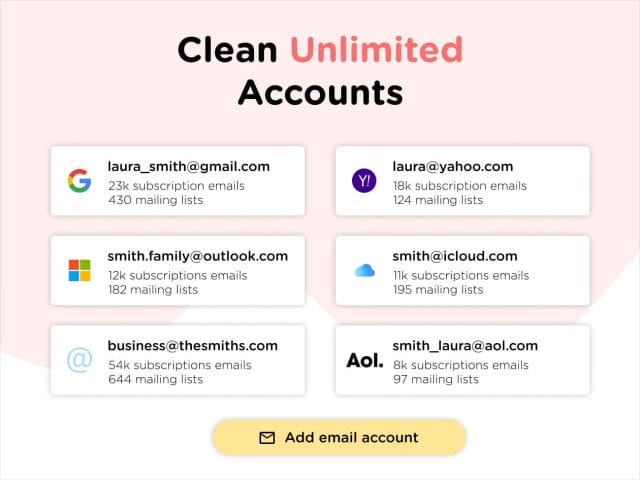 Leave Me Alone works with Gmail, Outlook, Yahoo, AOL, Fastmail, iCloud, and many more!