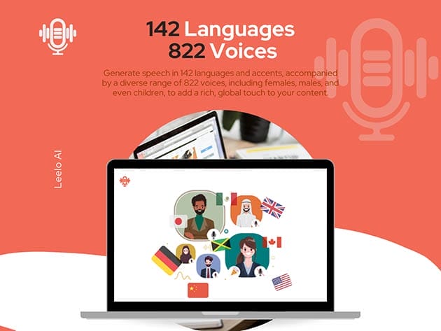 • Choose from a diverse array of 822 voices, including male, female, & child voices