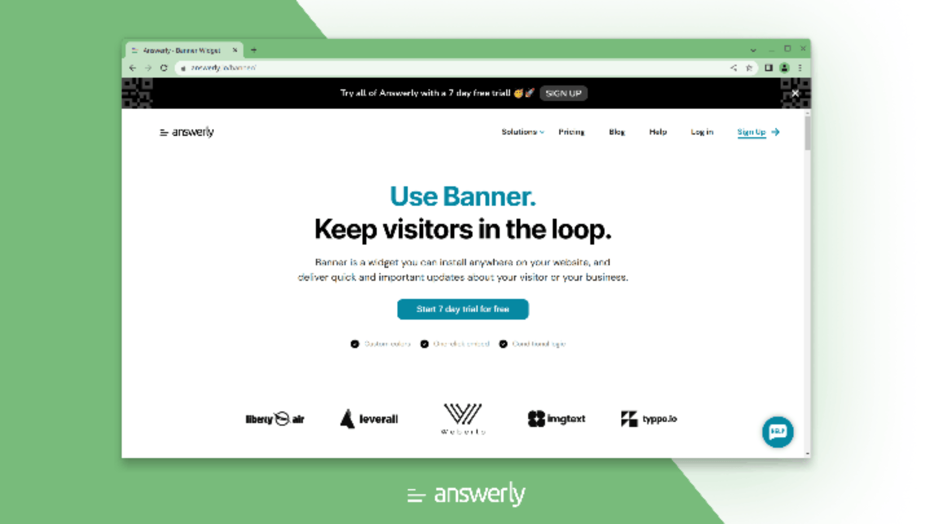 Banner is a widget you can install anywhere on your website, and deliver quick and important updates about your visitor or your business.