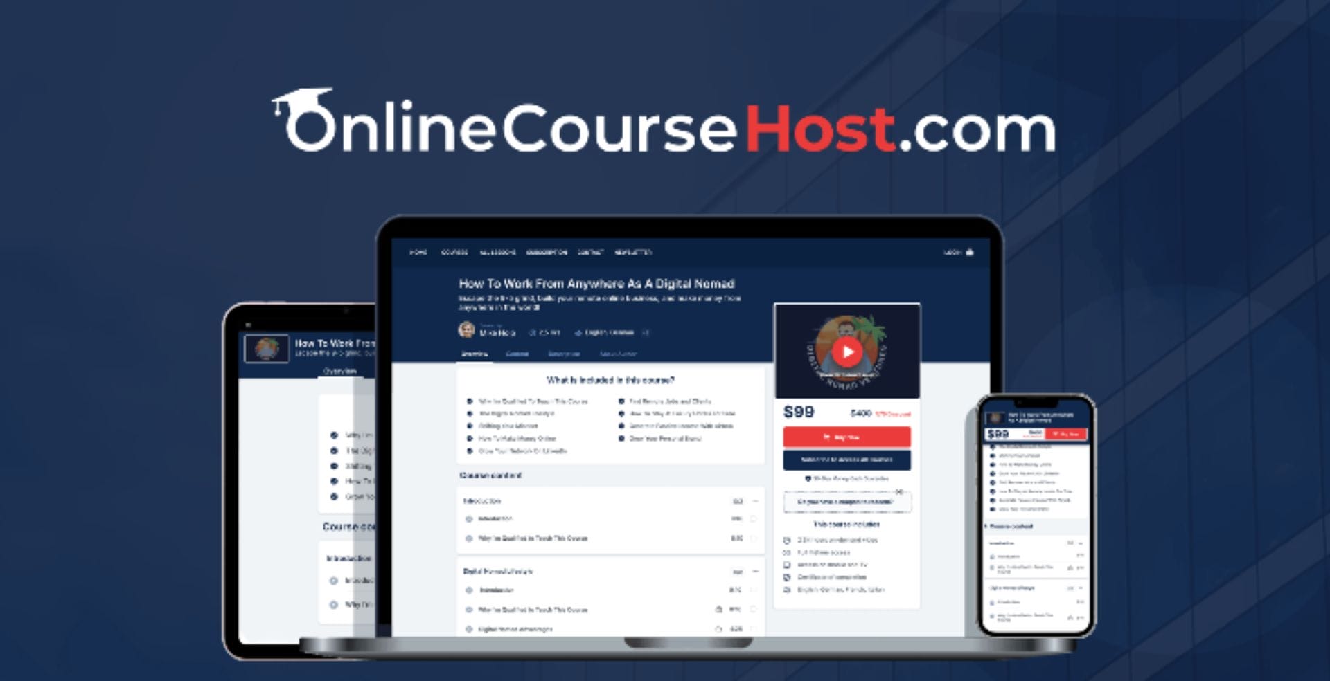 OnlineCourseHost.com is a white-label online course platform that allows you to create and sell your own online courses on your own website, with no marketplace middleman.