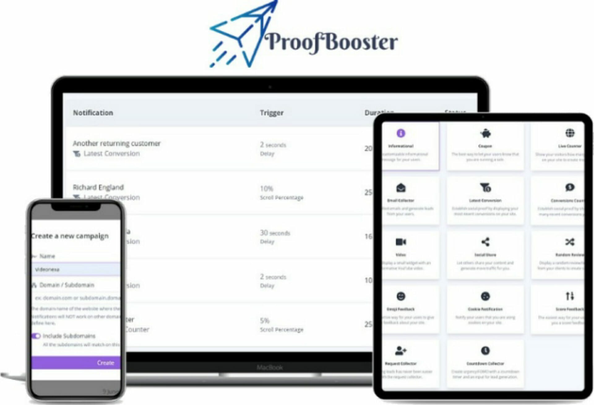 ProofBooster is an amazing marketing software, that leverages and automates the real power of social proofs to instantly increase trust, conversions and sales on your website, stores or sales page.