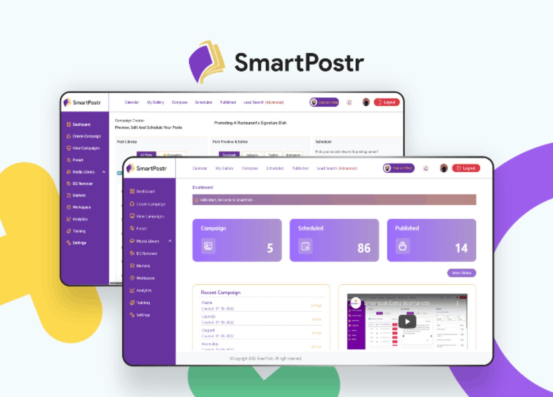 SmartPostr is a cloud based App powered by IBM Watson & GPT-3 AI that writes, creates & designs Unique marketing posts monthly, for your product, services, events, … etc. in any language.