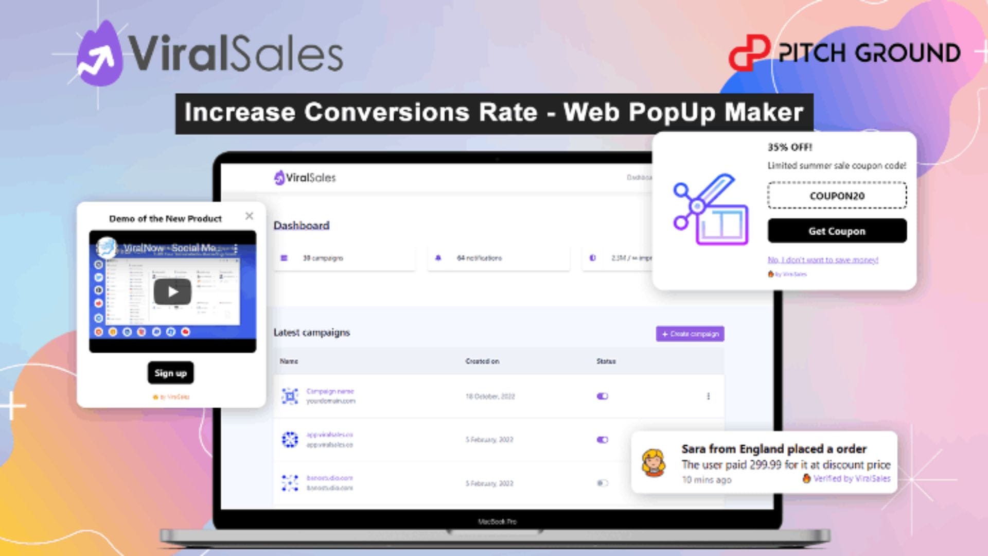 Lifetime Deal to ViralSales.co | Web PopUp Builder | Increase Conversion Rates: Plan A for $69
