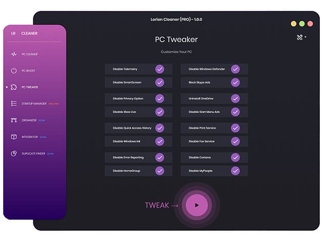 Is your computer running slowly? Lorien Cleaner provides you with the most powerful junk cleaning and privacy protection, and makes your computer run like brand new! With the built-in powerful components, Lorien Cleaner helps you repair problems, clean up drive space, optimize system and other advanced toolkits like eliminating privacy tracks, administering startup applications, uninstalling unwanted applications and permanently erasing files. Say goodbye to annoying lag and make your PC good as new!