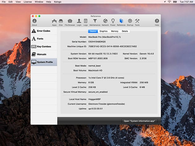 See everything from the graphics card & RAM bus speeds to the system serial number