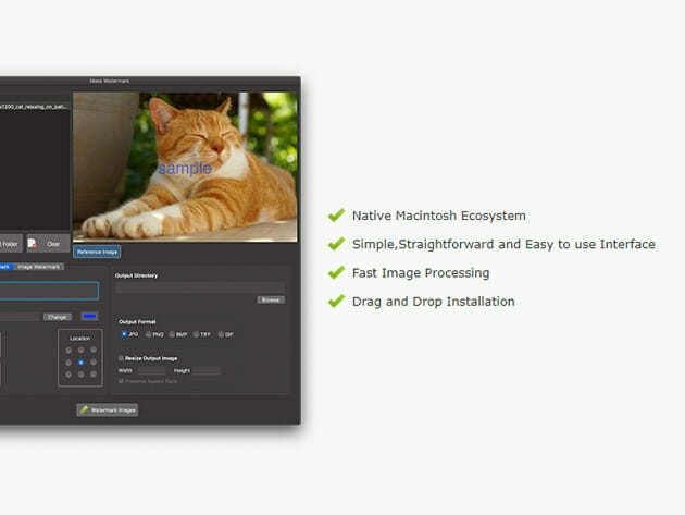 Softpedia:“Add one or more images, create various watermark templates, add text and logos in a few easy and quick steps with adjustable output quality.”