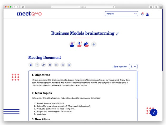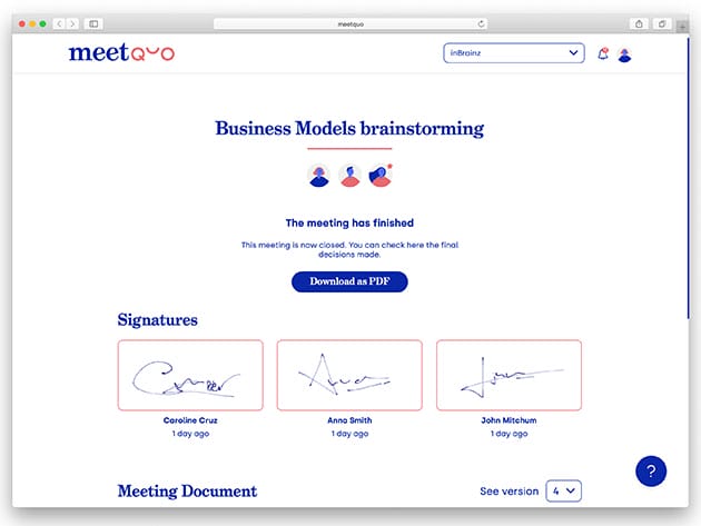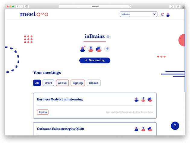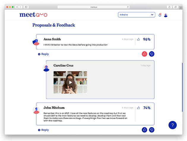 Did you know that an MIT study shows organizations usually spend an average of 23 hours per week just for meetings? This includes real-time online meetings which you thought save time. With Meetquo, you can conduct remote meetings and brainstorming sessions in each member’s own time. By simply creating a meeting document, members can make proposals and exchange feedbacks asynchronously. You can either type your ideas or record video replies. Once decisions are made, the team can simply close the discussion. All results are recorded and saved in a repository so you can review your meetings from time to time. Gather all your meetings together with Meetquo and sync with them whenever you want.