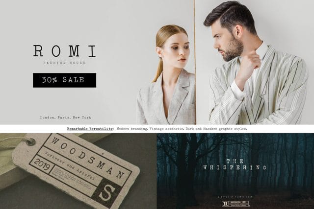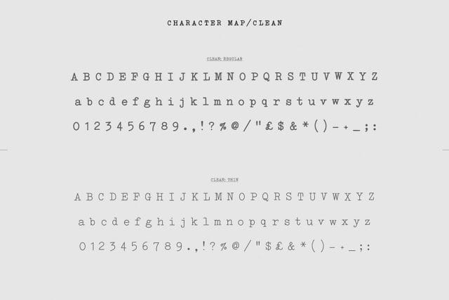 There are few fonts that are more versatile than typewriter fonts. From modern minimal branding to dark and gritty posters, a typewriter font can effectively do it all. So, say hello to Merchant Ledger! Developed from authentic typewriter hammer keys, this typeface comes in two styles (clean and rough), each in two weights (regular and thin). The result is a small family of remarkable versatility.