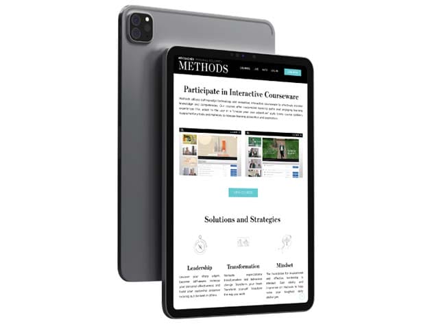Methods is an online learning platform that delivers accessible and practical leadership guidance for continuous improvement from the very best of Marshall Goldsmith and his 100 Coaches. Learn through immersive and interactive online courses, actionable bite-sized insight segments, and a comprehensive collection of straight-forward business advice. The courses offer customized learning paths and engaging learning experiences that adapt to the user in a “choose your own adventure” style. Every course contains supplementary tools and materials to increase learning absorption and application.