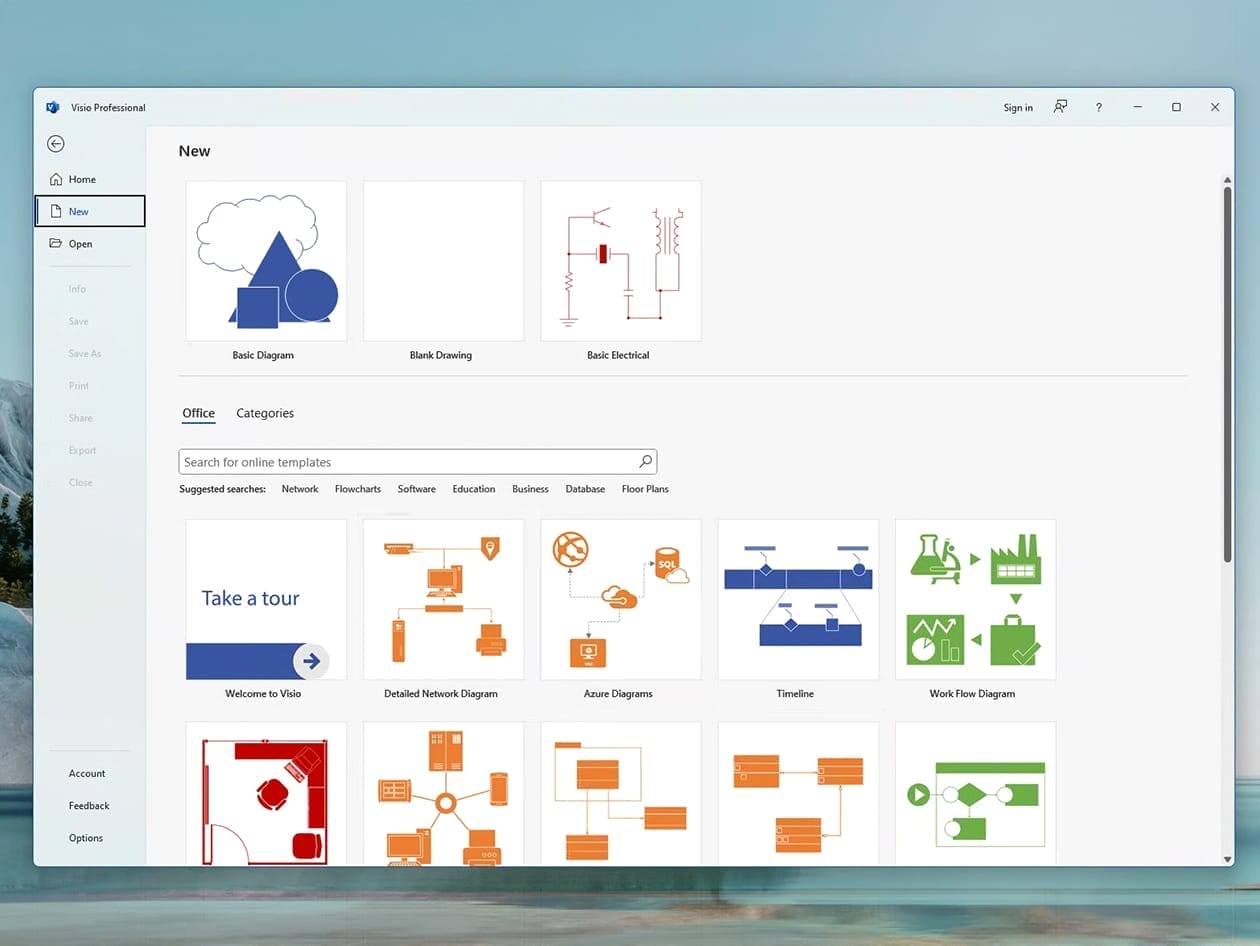 Visio 2024 makes it easy for individuals and teams to create and share clear, professional diagrams that simplify complex information. It offers updated shapes, templates, and styles, along with a new search bar to improve your experience. Visio 2024 also has a fresh design that matches other Office apps you use.