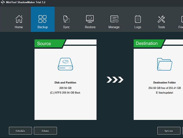 MiniTool ShadowMaker Pro brings easy file backup, system backup, and disk/partition backup to Windows users. It comes with a clear interface and works fast. In addition, this data backup software offers full, differential, incremental, and scheduled backups that really make it easy to customize your backup plan. Compared with the products of the same kind, MiniTool ShadowMaker takes less time for disaster recovery. With WinPE bootable media builder, MiniTool ShadowMaker is able to restore computer from backup image files during blue screen error, system crash, ransomware attack, and more.