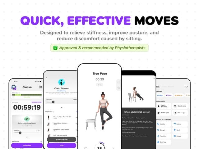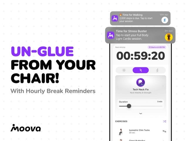Transform your health with Moova, the ultimate movement app trusted by employees at top companies like Netflix, Google, Apple, and Meta. Break free from the dangers of sitting with just 3-5 minutes of science-backed movement breaks throughout your day. Moova offers immediate relief from back pain, neck tension, and stiffness, while also helping prevent chronic pain and improving posture. With 200+ expert-designed exercises, flexible scheduling, and holistic tracking, Moova empowers you to stay active, improve focus, and boost your well-being anytime & anywhere. With lifetime access, customizable reminders, and sync with Apple Health or Google Fit, you can easily integrate Moova into your routine and see long-term results. Take advantage of this exclusive lifetime deal and invest in your health today!